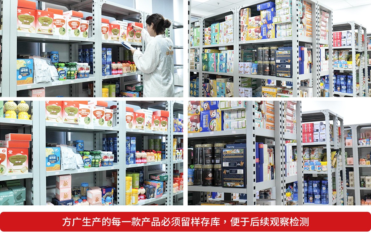 检测中心建有300平方的留样室,留样室安排专人负责留样样品的管理工作,按时、如实的做好留样观察记录和每日的温湿度的监测记录,对检查、记录留样室的温湿度和留样样品的接收、保管、超过留样期限样品的销毁负责。工厂每天生产30多种产品,依据管理规定和要求,留够做一次出厂检验的样品,那么每个产品至少要留1kg(6个小包装)样品(5个样品用于微生物检验,1个样品用于理化检验)。